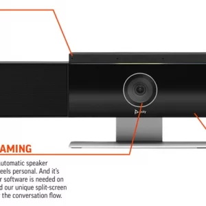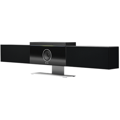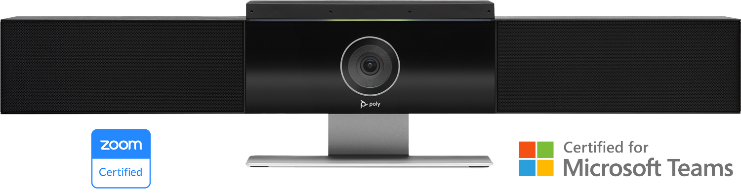 Meet Poly Studio, the premium USB video bar built for mid-sized rooms. Delivering the best audio quality in its class, it blocks distracting sounds that can interrupt meetings. Teams on both ends of the call catch every word with rich, powerful stereo speakers and a crystal clear microphone. With automatic speaker or group framing and automatic speaker tracking, the connection feels personal. They see all the important details, too—right down to body language and facial expressions. Easy to manage? Of course. The cloud-based management tools let IT push software updates and make settings changes without ever leaving their desk. Poly Studio. The shortcut to better huddle room collaboration.